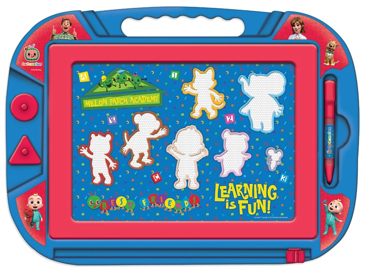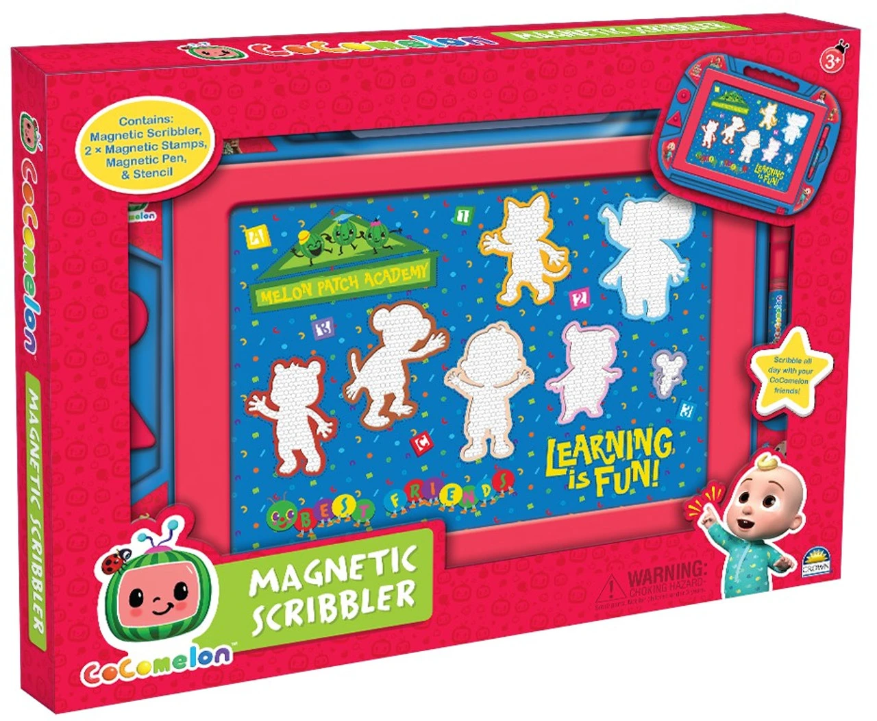 This adorable Cocomelon Large Magnetic Scribbler will entertain any little Cocomelon fan. Featuring Baby JJ and his friends, this fantastic scribbler comes with 2 x Magnetic Stamps, a Magnetic Pen and a CoComelon Character Stencil for your little one to create their own masterpieces. Hours of creative fun, simply draw and use the slide eraser to use over and over again.