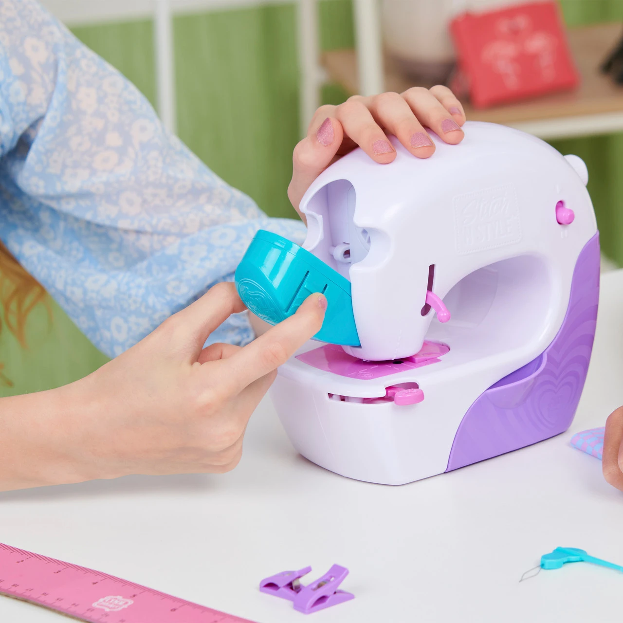 - SEWING KIT WITH NO THREADING: Pop the pre-threaded cartridge into the included sewing machine and learn real sewing – no threading needed! Unleash your creativity and design your own stylish accessories! Batteries required.