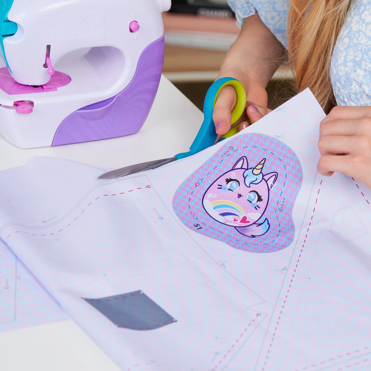 Be a fashion designer and sew your own stylish fashions and accessories with the Cool Maker Stitch ‘N Style Fashion Studio! Featuring a sewing machine with a pre-threaded cartridge (no threading needed) and smart-stitch fabric sensors that know when to sew; a large sheet of pre-printed patterned fabric, decorative water transfer prints and more, this kids sewing kit makes it easy to learn real sewing. Cut out the templates from the fabric and stitch and style six super cute accessories: a sunglasses case, belt bag, scrunchie, headband, purse and a plushie! The Stitch ‘N Style Fashion Studio also works with most fabrics, so you can make even more amazing creations. The machine’s smart-stitch sensors make it a great beginner sewing machine! Fold the fabric edges and use the clips to keep fabric in place, then guide the fabric towards the needle. The machine automatically starts sewing and stops before it reaches the fabric’s edge! Continue sewing to finish your project, then customize it with the water transfer prints. Choose a print, wet the stamper and dab it on the fabric. Place the print on the dampened fabric and dab again with the stamper to apply it! When you’re finished, pack everything into the storage drawer until next time. For even more ways to express yourself with Cool Maker, sew additional accessories with the Stitch ‘N Style Fashion Refill, spin to create bracelets and necklaces with the KumiKreator Bead & Braider bracelet making kit and stamp stylish mani-pedi nail art with the GO GLAM U-nique Nail Salon nail stamper (each sold separately). Cool Maker girls toys and DIY crafts make great gifts for 8 year old girls and up. They’re the perfect activities for a sleepover, birthday party, at-home spa day and more. Design and stitch with the Cool Maker Stitch ‘N Style Fashion Studio!