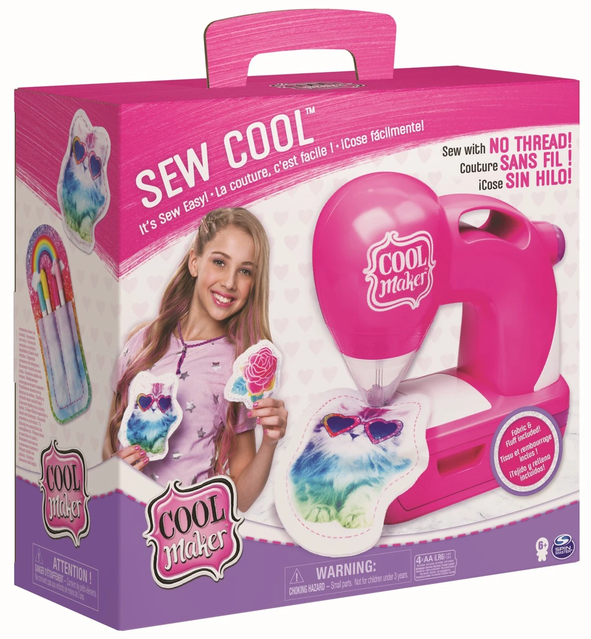 Design and stitch your own projects with the Cool Maker Sew Cool Sewing Machine! With Sew Cool, magically sew with no thread! This easy-to-use sewing machine comes with everything you need to create five pre-cut projects, including a colorful rainbow marker holder, adorable stuffed kitty character, a stylish pouch and more! Working with Sew Cool and its special printed fabrics, it’s never been sew easy to sew your own designs. With its threadless design and no foot pedal, no bobbins to wind or needles to thread, Sew Cool is safe and easy for kids to use and is the perfect introduction into sewing! Follow the easy instructions and the fabric’s printed sewing guides to stitch together your trendy projects and proudly wear and share your cool new designs! For even more ways to express your style, look for the Cool Maker Hollywood Hair Extension Maker and the GO GLAM Nail Salon (each sold separately). Magically create with the Cool Maker Sew Cool Sewing Machine!