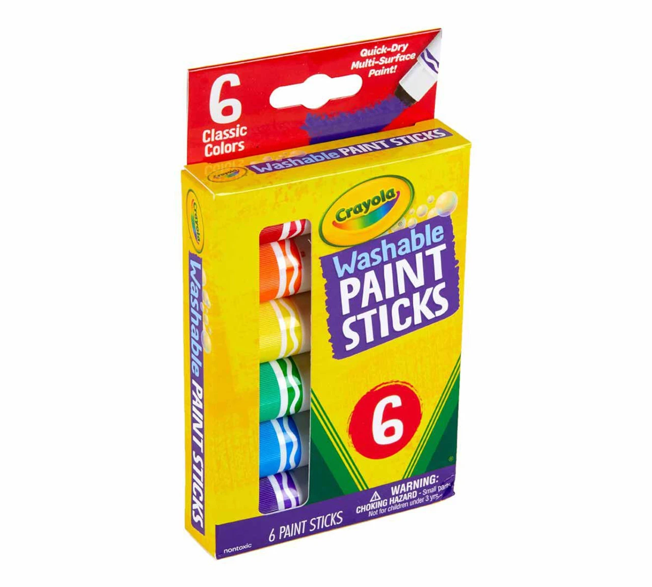 CRAYOLA KIDS PAINTS: This less mess kids paint set includes 6 Paint Sticks in classic colors.