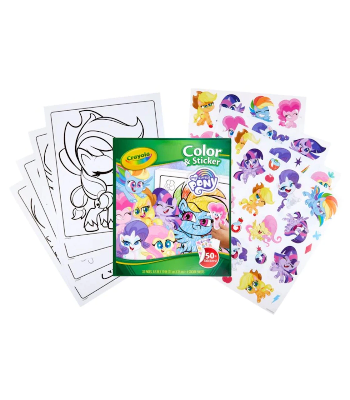 - Crayola’s Colour and Sticker Book contains 32 colouring pages and over 50 large My Little Pony themed stickers!