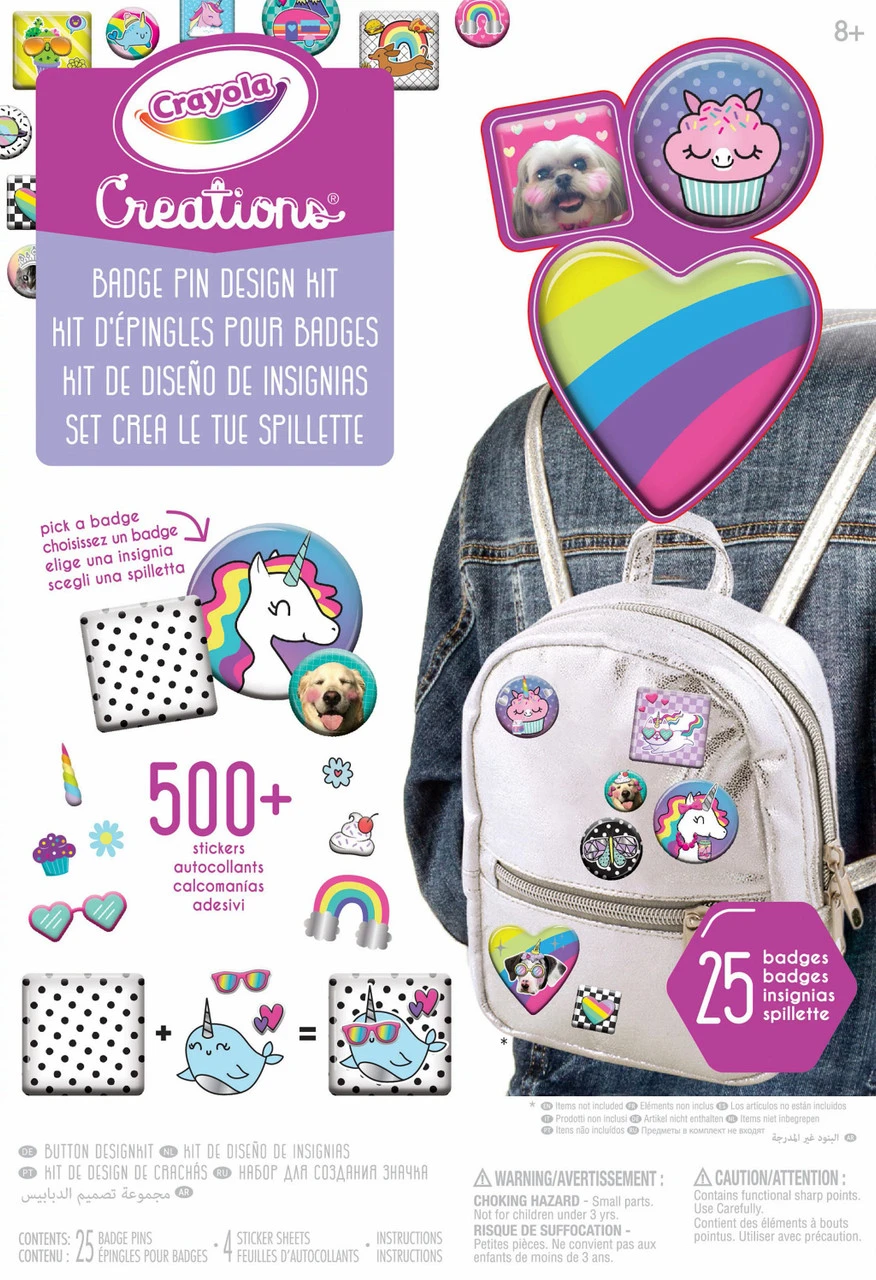 Crayola Creations Badge Pin Design kit allows kids to design and create their own Bages to decorate backpakcs, purses, jackets and more! Create cute BFF designs and share with your closest friends!