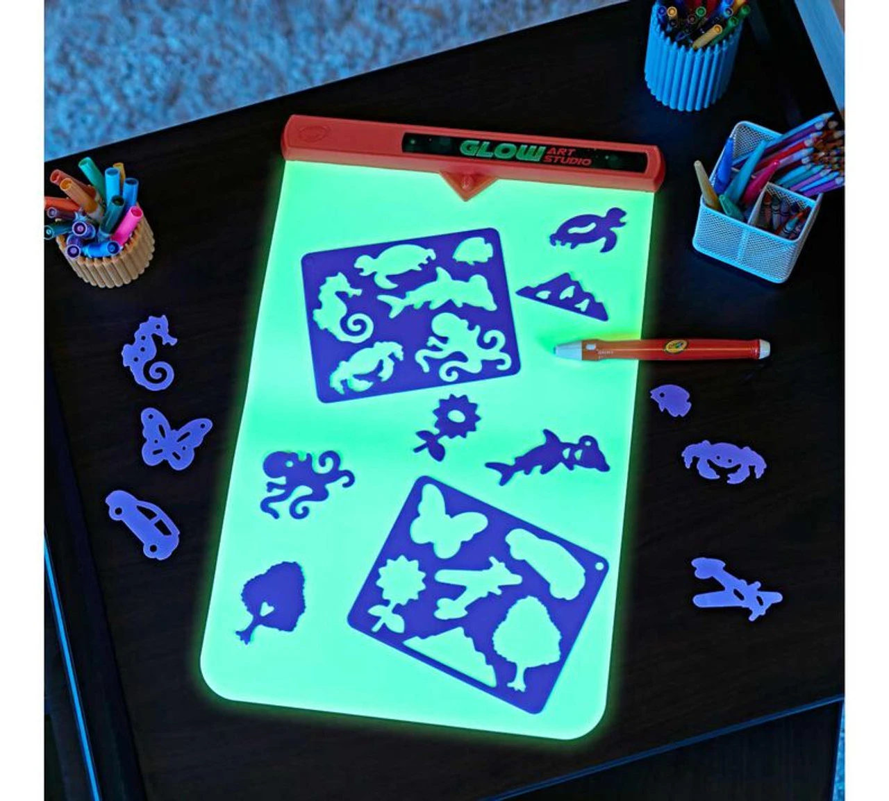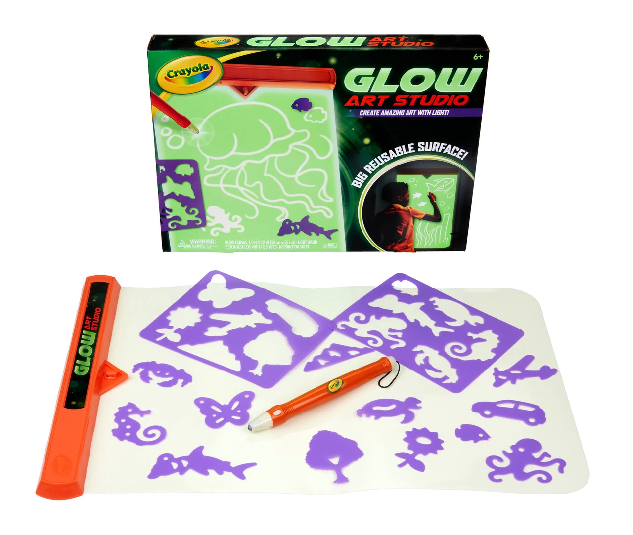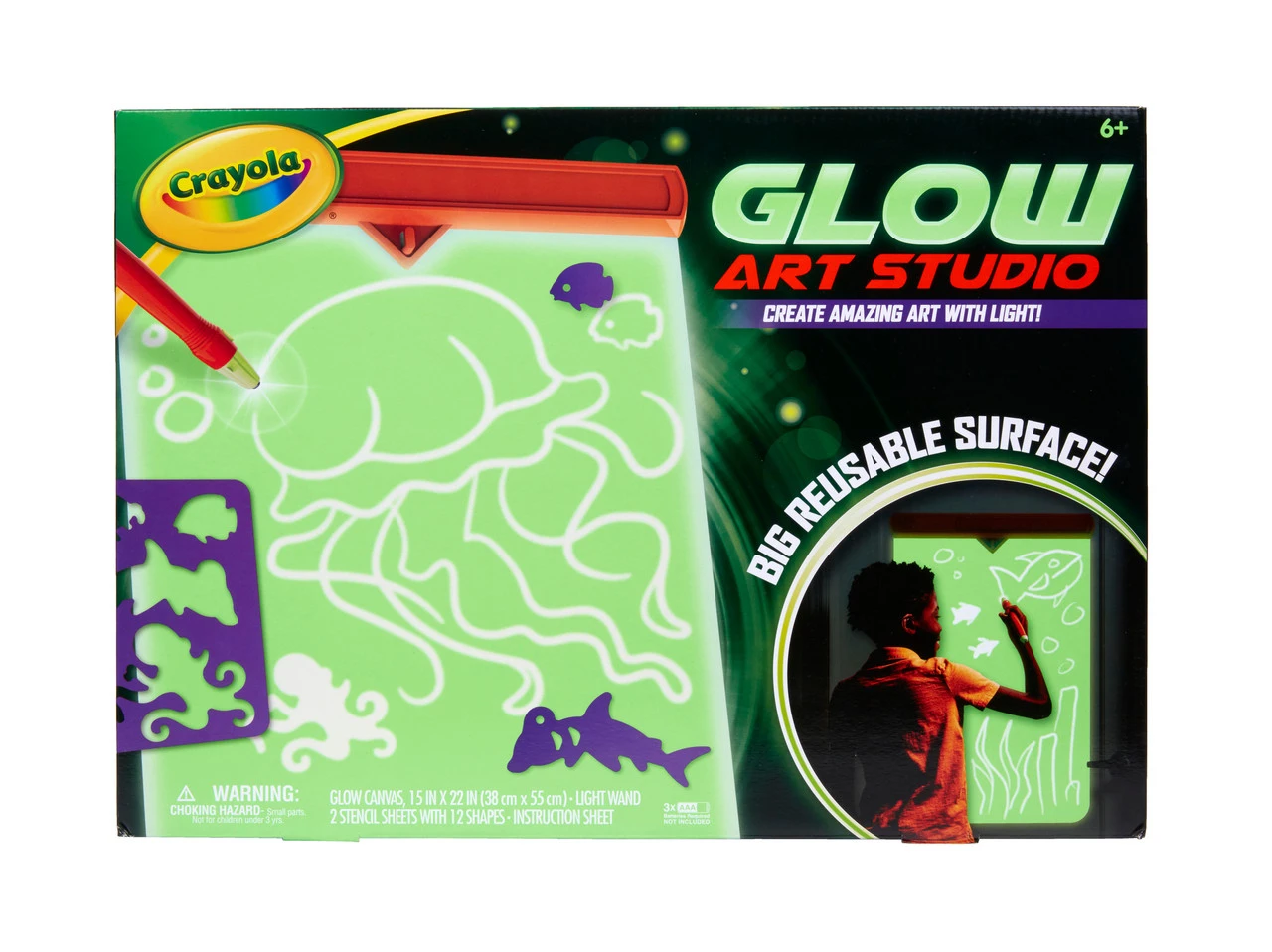 - CRAYOLA GLOW ART STUDIO: Create amazing art with a unique light wand that glows in the dark! Glow drawings magically disappear so kids can keep creating again & again!