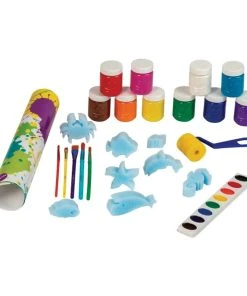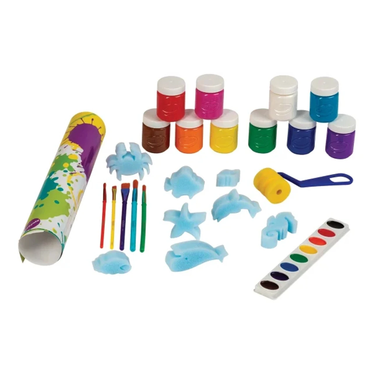 - Includes 10 x washable paint bottles (59ml) EA, 8 x Sealife themed sponges, 1 x paint strip with assorted colours, 5 x assorted paintbrushes, 1 x pattern roller and 1 x mat