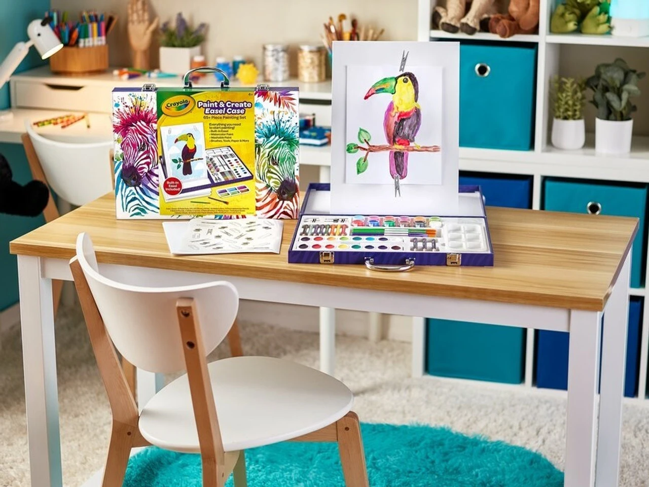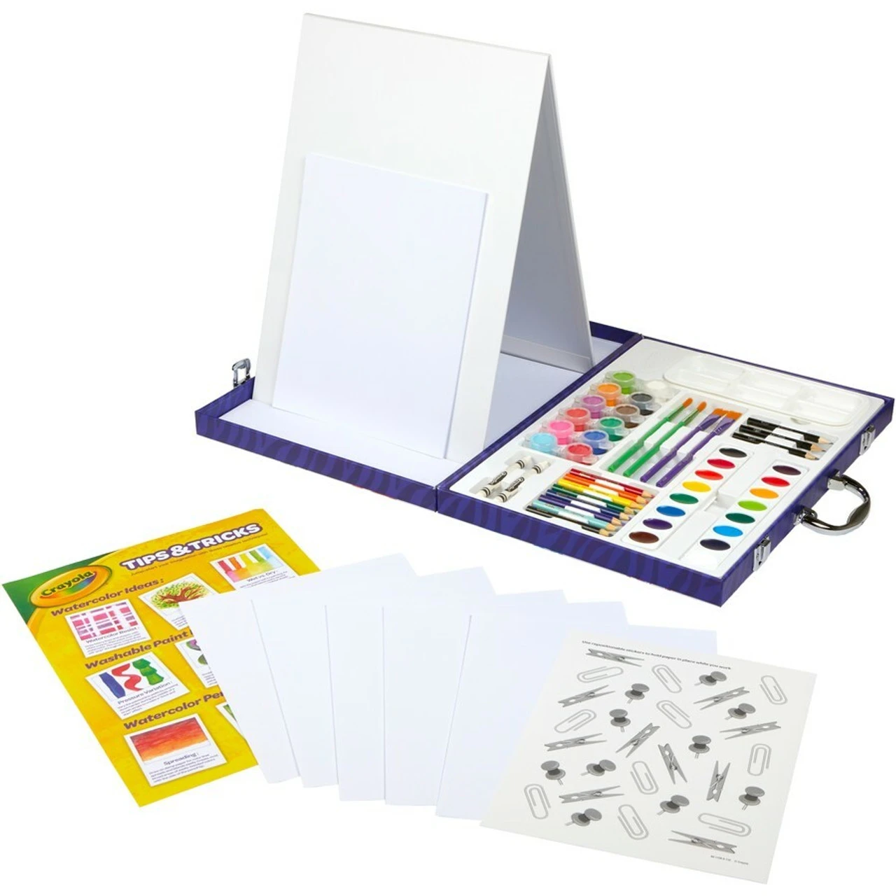 The Crayola Easel Art Case has all kids need to paint and create the easy way, with a built-in easel! The dual-sided table top easel even allows two artists to work at once!