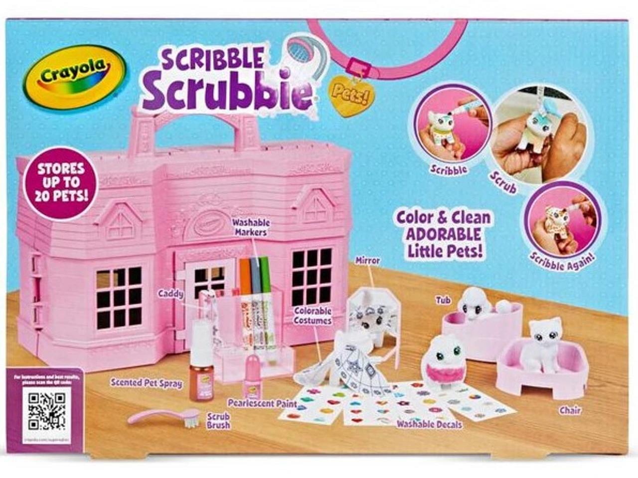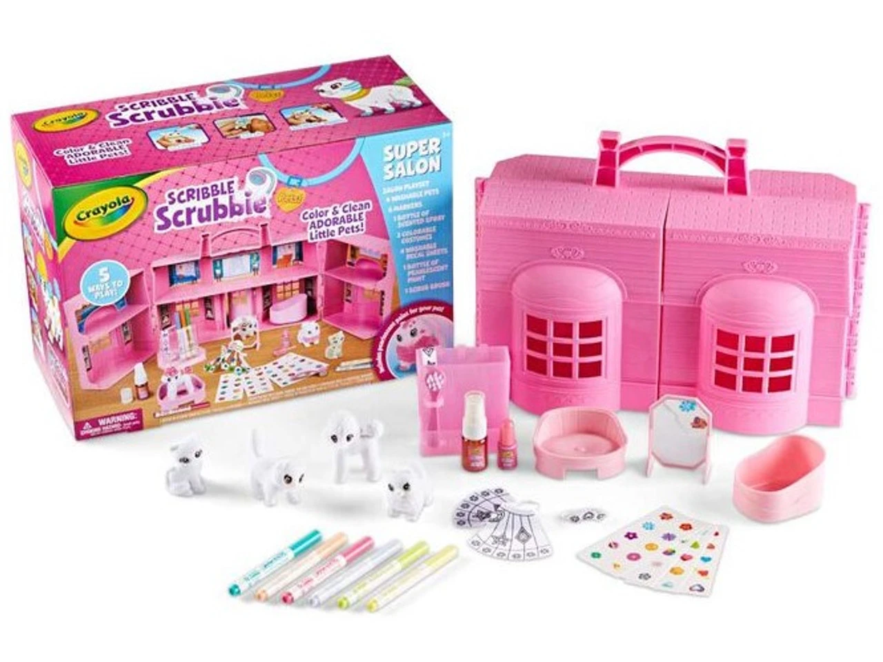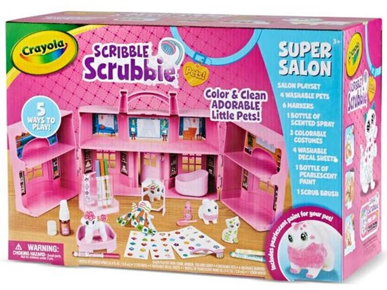 There’s a new salon in town, the Scribble Scrubbie Super Salon! Give your Scribble Scrubbie Pets a fresh look with beautiful Pearlescent Paint, Stickers, Markers, and even Scented Spray. This pet toy set has everything needed to create show-stopping, one-of-a-kind looks for your pets. Throw a fashion show and invite friends to join in the fun. When you’re ready for a new look, wash your pet clean and start again. This SUPER salon playset makes a great starter pack for new Scribble Scrubbie collectors, or an exciting addition to existing sets. Ideal for birthdays and holidays, it’s safe for kids ages 3 & up. CHOKING HAZARD! Small Parts. Not for children under 3 yrs.