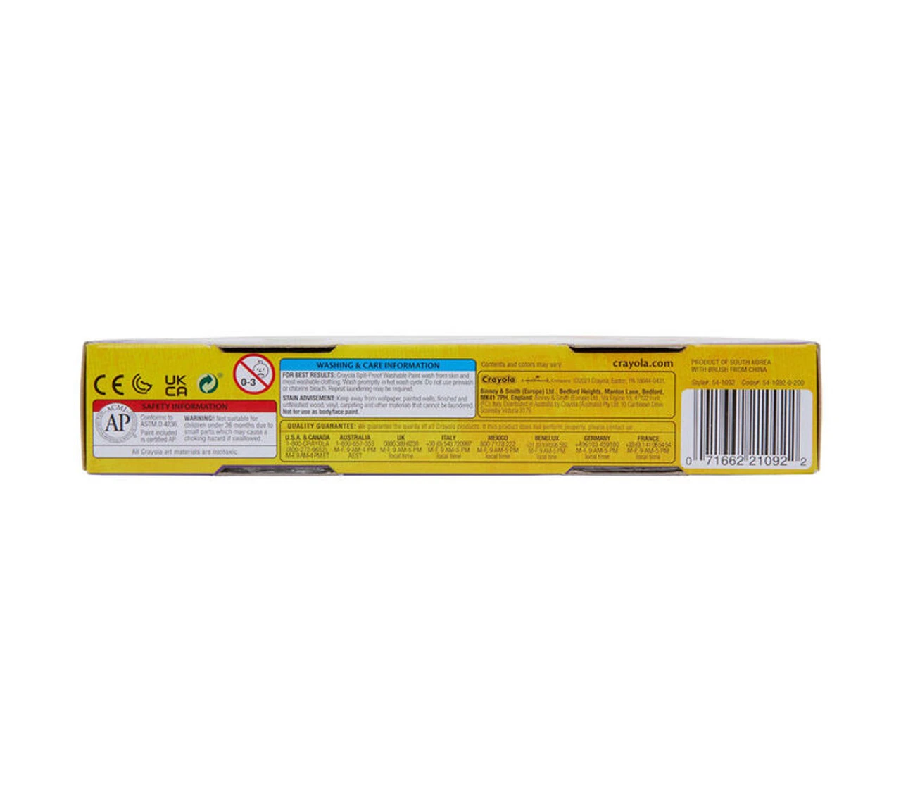 - WASHABLE PAINT: Crayola Washable Paints wash from skin and most washable clothing.