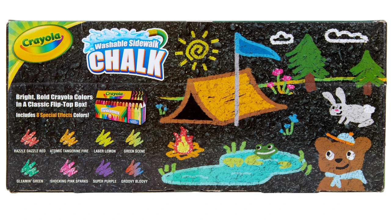 • Take the Fun Outdoors:The Crayola Washable Chalk Collection gets kids excited about spending time outside being creative. This interactive chalk kit encourages outdoor fun with friends and provides kids with an activity that helps them become more active, social, and creative. Whether drawing on the sidewalk, blacktop, or driveway, this chalk brings the fun outdoors.