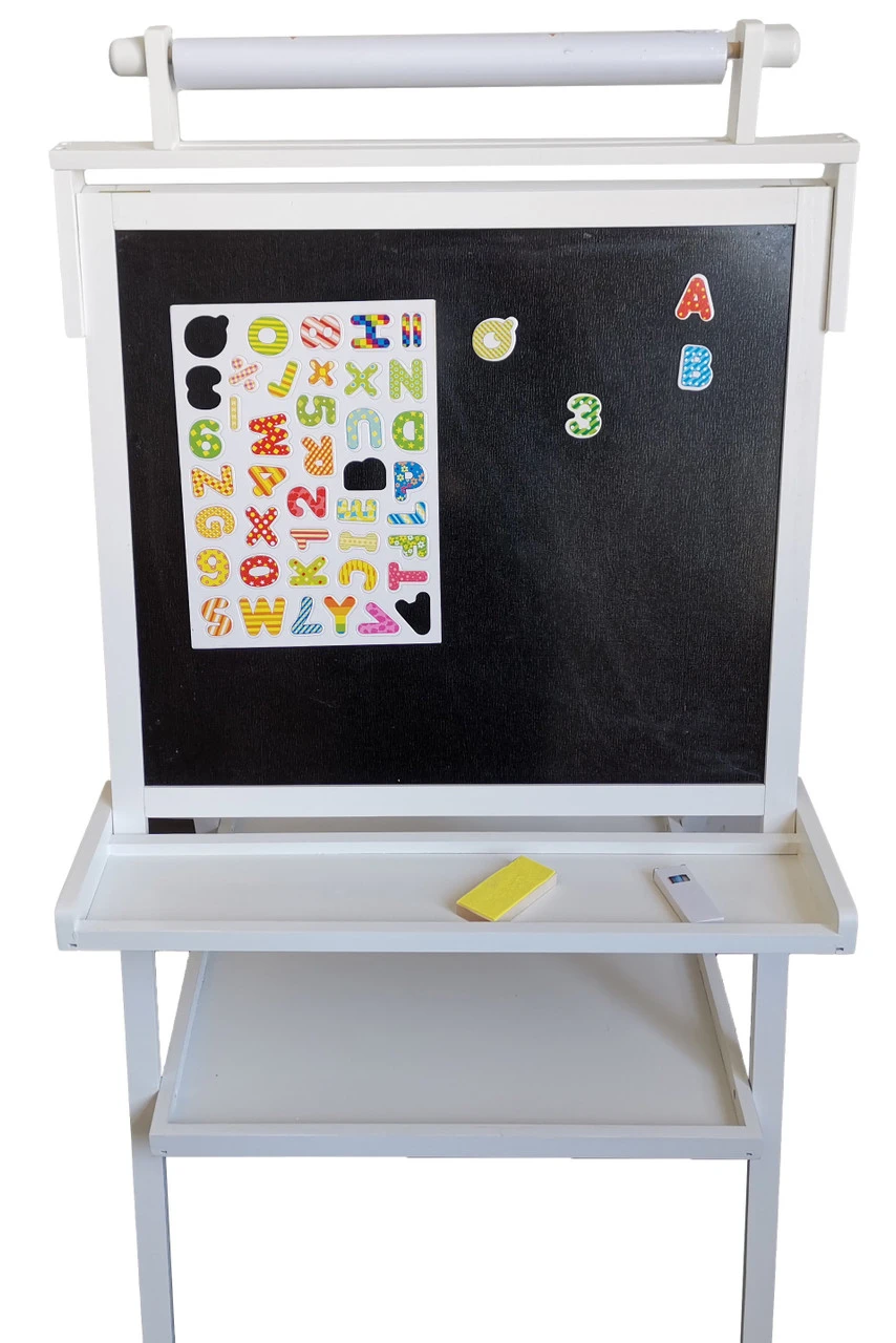 Capture all your little ones drawing creations with this Delxue Art Easel. They have so many options to create their masterpiece on with a chalkboard on one side and, a whiteboard on the other or paper to roll down and create on!