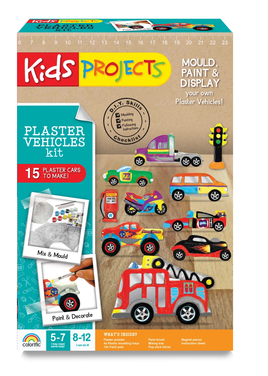 With 15 different plaster pieces to mould and create, your little one is sure to have fun with this vehicle kit. From taxis to motorbikes to racing cars and more, this kit allows you to mould, create and accessorize your own vehicles.