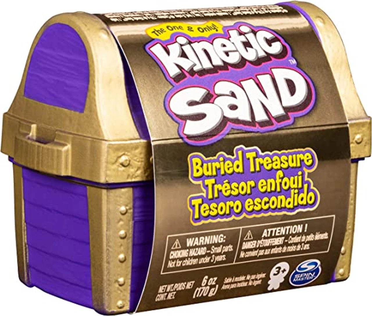 Now you can dig for gold with the Kinetic Sand Buried Treasure Set! Use the key hidden on the bottom of the playset to unlock your treasure chest! Inside, you’ll discover a chest filled with Kinetic Beach Sand (the key works as a shovel!). Find your hidden tool buried inside – it will help you scoop, transform or shovel your Kinetic Sand! Dig until you uncover three bronze or silver coins, and you may even find the rare gold coin! When you’re finished playing, the reusable treasure chest is the perfect storage solution for your Kinetic Sand. Kinetic Sand is the original magical, mouldable and mesmerizing sand. It flows through your hands and never dries out, so you can play again and again. Go on a treasure hunt with the Kinetic Sand Buried Treasure Set! Will you find the rare gold coin?