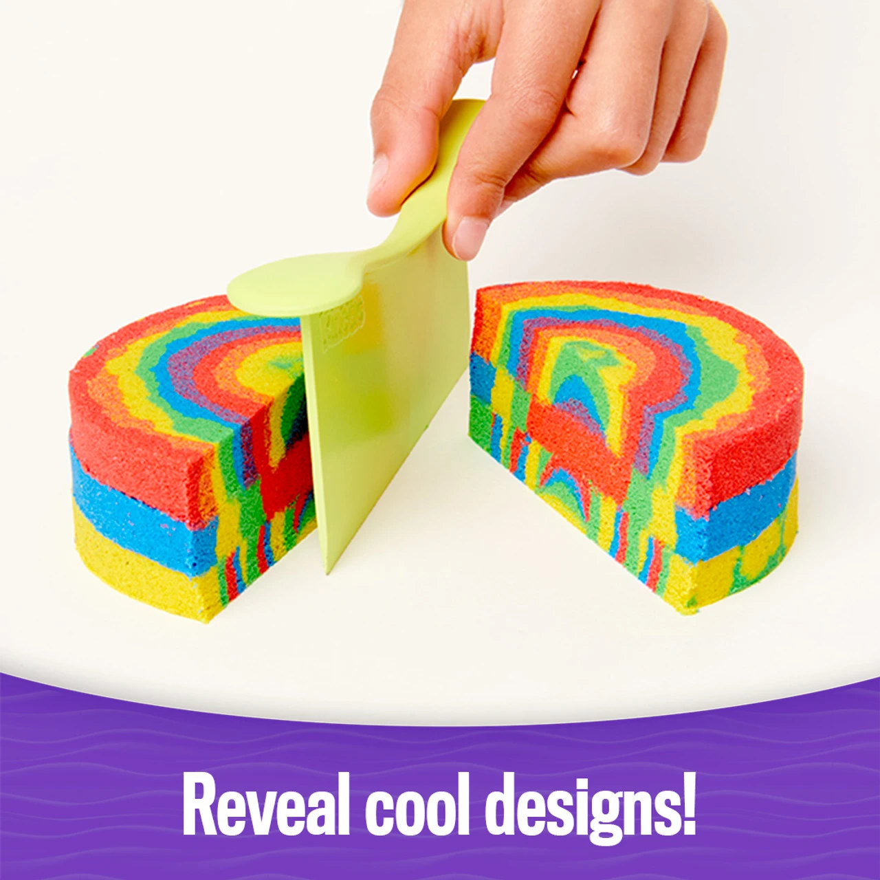SWIRL AND REVEAL SURPRISE CREATIONS: Theres so many ways to play with the Swirl N Surprise Set! Fill the sand swirler to create sand art, then layer sand, squish it, carve it, slice it and more! Revealing your surprises is so much fun!
