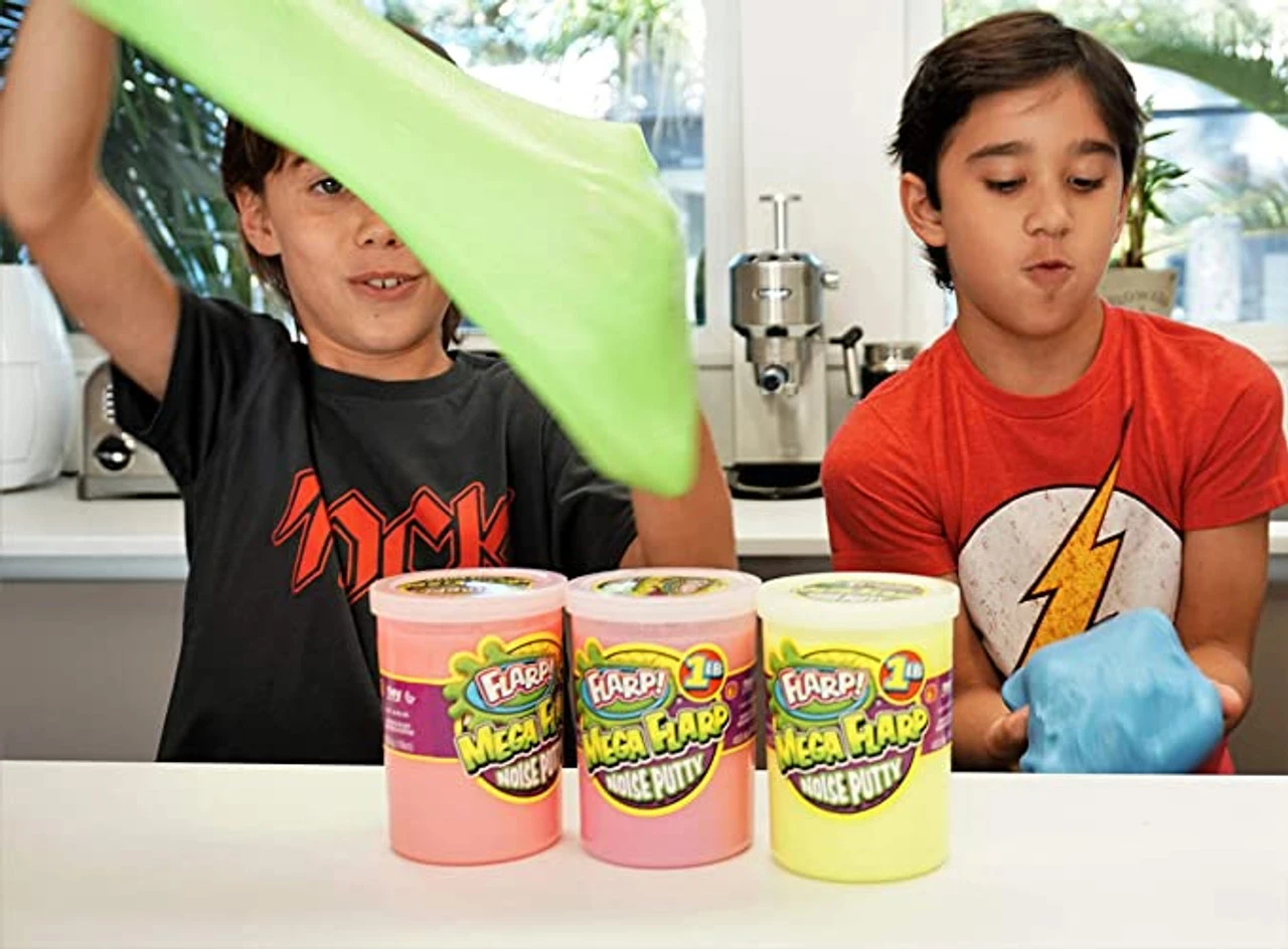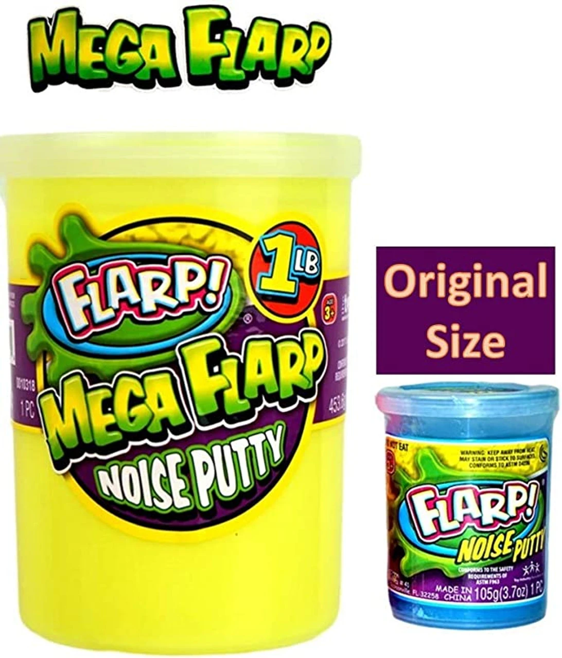 1 Unit Random Assorted Color of Mega Flarp Putty 1 Lb (1 Pound) Sound Making Fluffy Slime and Scented. Assorted Neon Colors Toys for Kids NEW! Flarp Quality! . Fun farrt noise-making putty in a container. Great Easter Basket Stuffers.