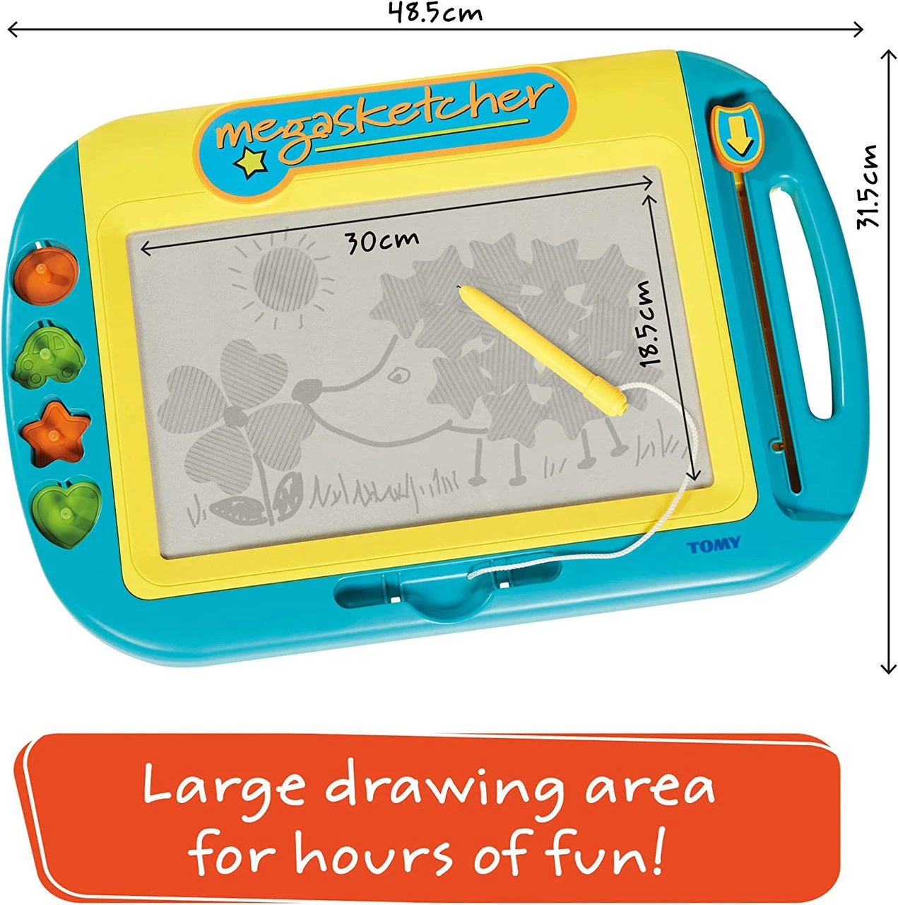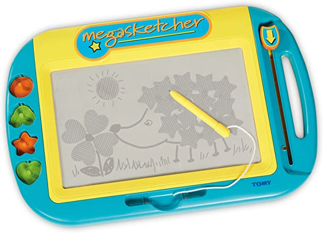 - LARGE MAGNETIC BOARD – Motorised Megasketcher is the new TOMY mess-free doodling tool designed for early drawing skills and creativity development. Giving hours of fun, encouraging and developing your child’s imagination