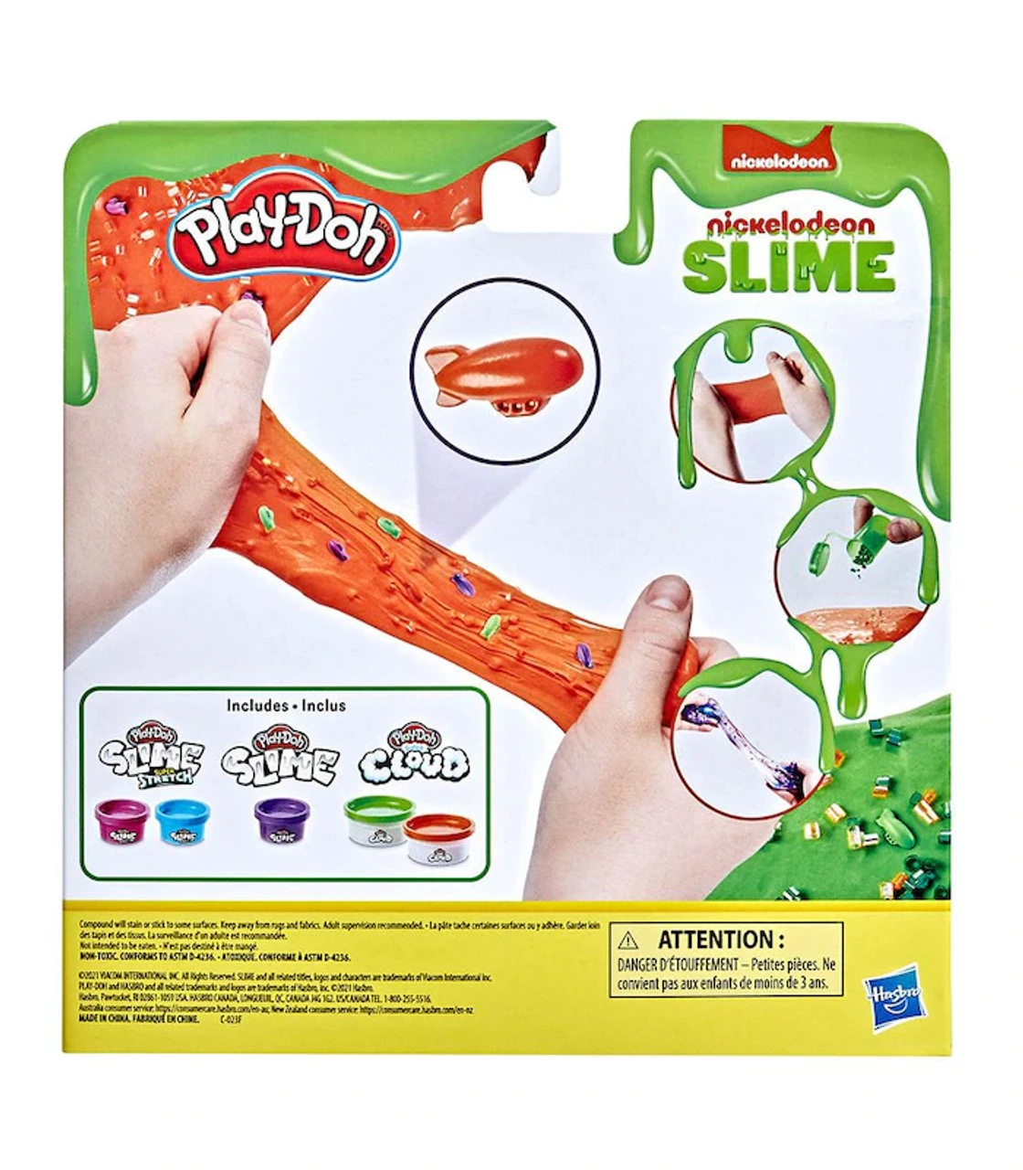 Create your own rockin’ mix of colors and textures with this Nickelodeon Slime kit! The Rockin’ Mix-ins Kit features 3 gooey, stretchy, and puffy Play-Doh Slime compounds and fun mix-ins. Try mixing different combos with colors like classic Nick orange and green, iconic blimp beads, and shiny bingsu beads. This Nick toy is a great activity or gift for kids 4 years and up! ©2021 VIACOM INTERNATIONAL INC. All Rights Reserved. SLIME and all related titles, logos and characters are trademarks of Viacom International Inc. HASBRO, PLAY-DOH, the PLAY-DOH logo, and all related trademarks and logos are trademarks of Hasbro, Inc.