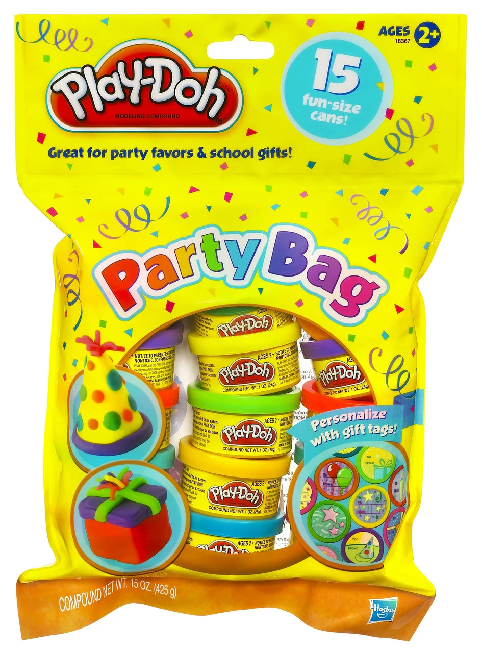 Share the fun and share the creativity with this Party Bag full of 15 cans of PLAY-DOH modeling compound. Featuring gift tags on the top of each one, these brightly colored cans are perfect for passing out to your friends at your next party. You can each mold cool things on your own or combine to create one giant, amazing creation! Moms are sure to love these, too, and grab one on-the-go to keep imaginative kids entertained anywhere.