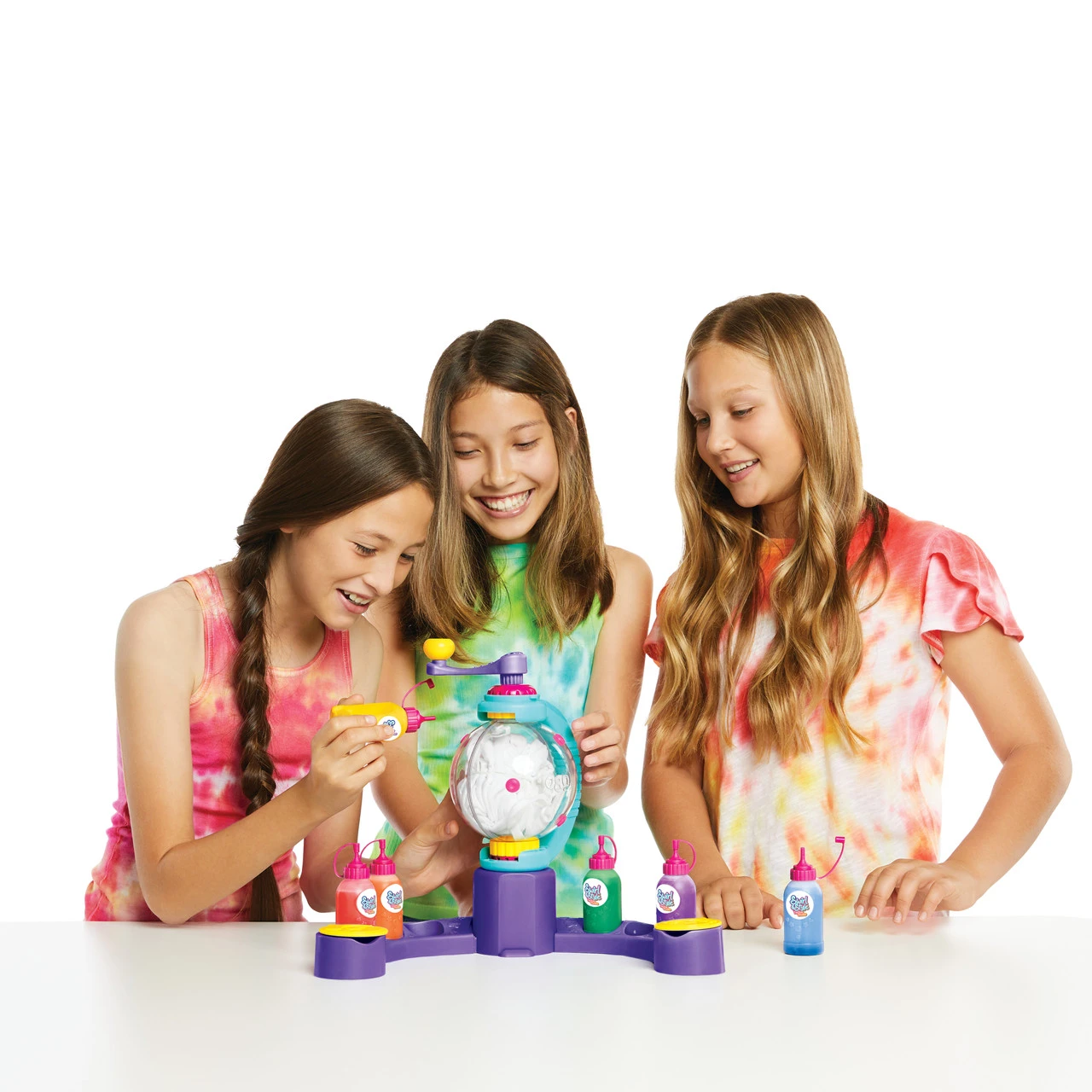 Swirl and Style brings a new element of fun to tie-dying! With its unique, self-contained orb, tie-dye creations are made mess-free. Simply put the dye bottles into the self-sealing valves to dye, spin, wash and wear. Watch as the colours transform ordinary clothes to bright and colourful styles you want to wear!
