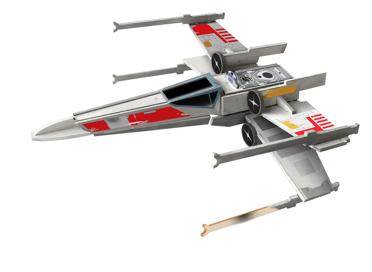Wood Worx presents a detailed re-creation of the Rebel X-Wing Starfighter featured in the movie “Star Wars: A New Hope”. Follow the step-by-step instructions to simply Build, Paint, Stick and Play!
